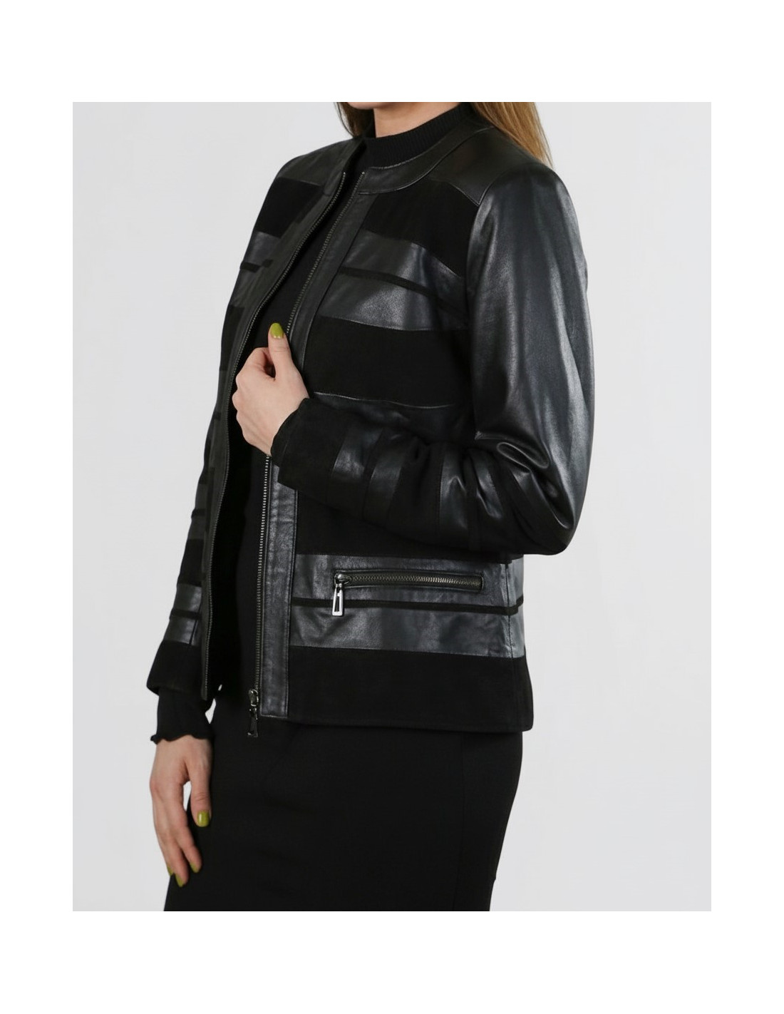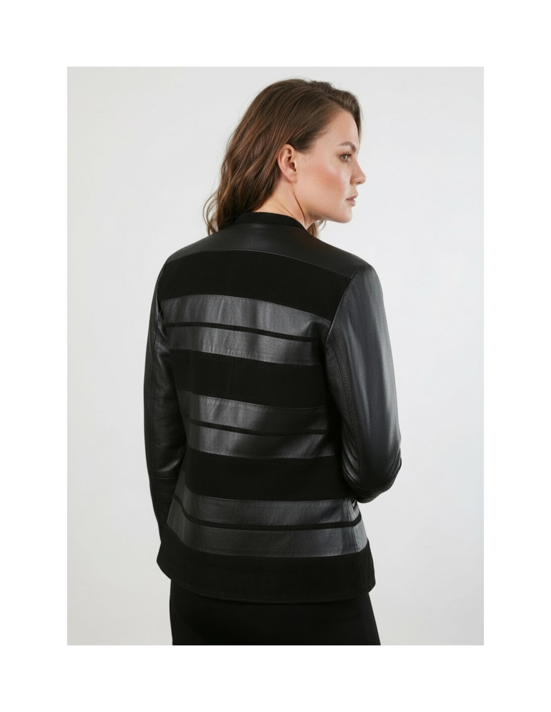 Geacă de Damă din Piele de Miel Nappa și Velur Model Caterina Negru