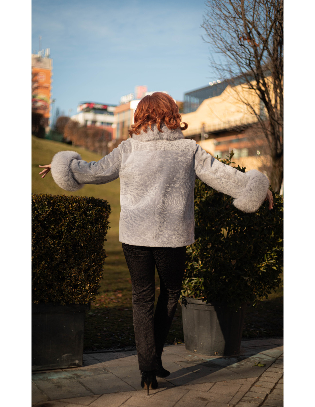 Capă de Damă Model XL din Blană de Miel Australian Gri și Guler din Vulpe Argintie Mirela